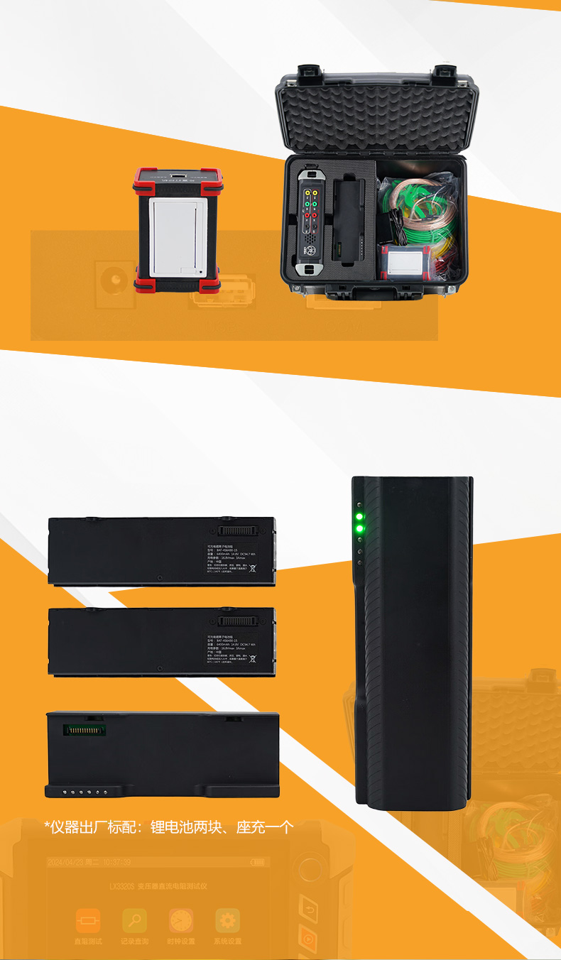 1、鋰電池供電,且電池可更換,并可選配多塊電池與電池座充,滿足現場連續測試。